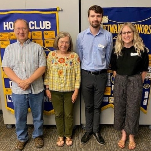 Cristi Meyer, far right, and Joe Clifton from CASA (Court Appointed Child Advocates) of Larimer County spoke about the work they do in advocating for children who have experienced abuse and neglect. Cristi and Joe were guests of Eyeopeners member Francie Aubuchon and are joined by President Elect Gary Klesner.