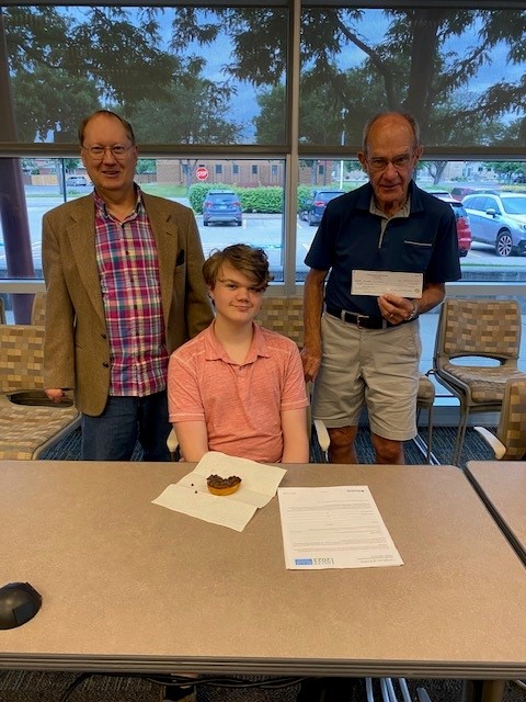Jaden Shaffer, center, a Key Club member from Colorado Early Colleges, was presented a check to help cover his expenses in attending the Kiwanis International Convention in Colorado Springs by Jack Gianola, right, and Gary Klesner, Eyeopeners President Elect.