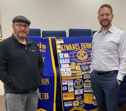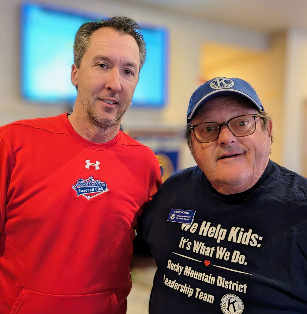 Eyeopeners member Larry Howell invited Thad Anderson (left) to present about Fort Collins Baseball Club. https://www.fortcollinsbaseballclub.org. Our members are looking forward to hosting hotdog cookouts for the Baseball Club this summer.