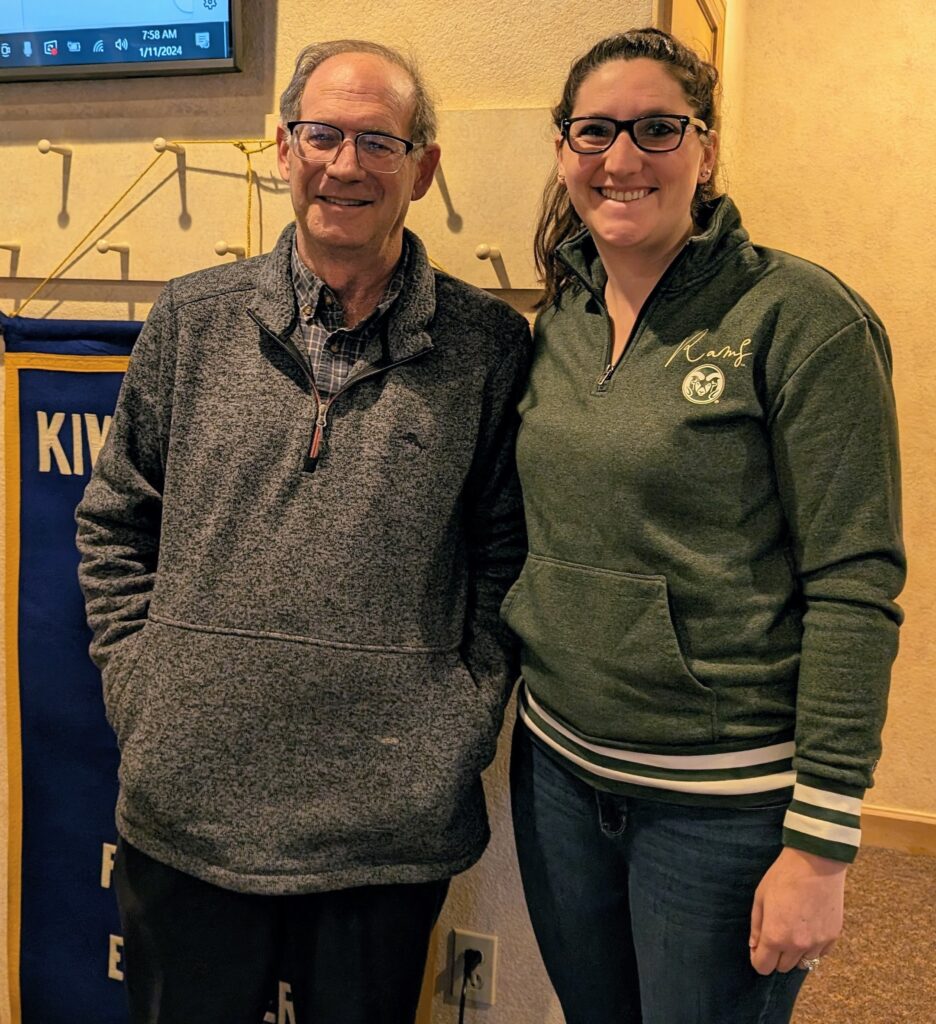 Eyeopeners Kiwanis member Sue Ayala invited Larimer County 4-H CSU Extension Youth Development Specialist, Rachael Wildman, (left) to present at our April 4th meeting. The goal of 4-H is to develop citizenship, leadership, responsibility and life skills of youth through experiential learning.