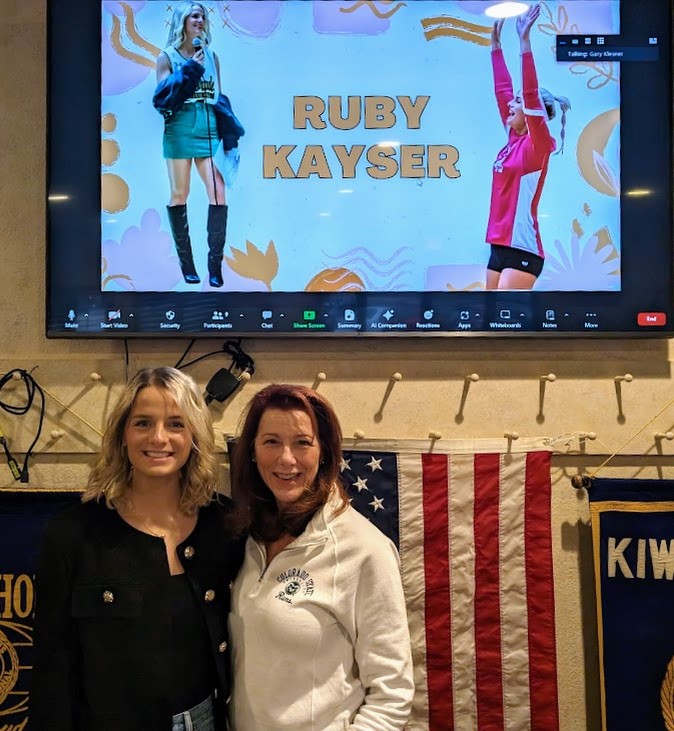 Kiwanis member Nancy Wiehagen (right), invited CSU volleyball defensive specialist, Ruby Kayser, to present at our meeting on March 7th. This former Key Club member was awarded the Community Service Award last year at the CSU Student Athlete Advisory Committee Ramies.