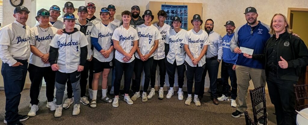 The Poudre High School baseball team joined us for our meeting on May 2nd. Led by coaches Shawn Pitts and Joe Fontana, our guests showed their appreciation for a donation we provided to the Poudre Baseball Club. It was heartwarming to hear the coaches and players describe how the money will be used to support the athletes and how the team supports character building.