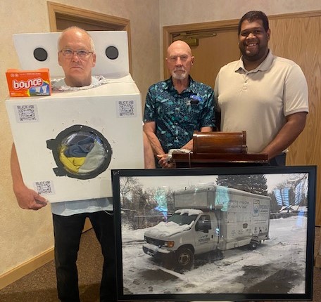 Woody Carlson, left, spoke about Homeward Alliance’s Mobile Laundry serving Fort Collins and Loveland.